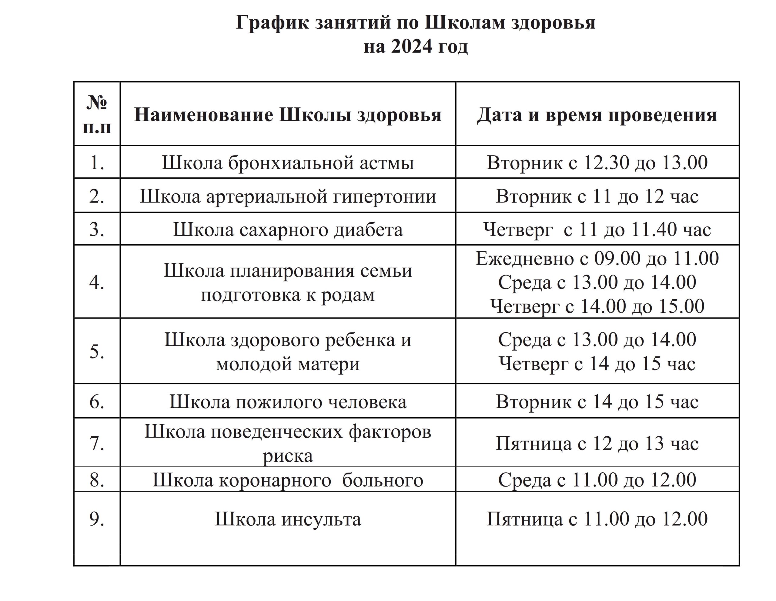 Школа здоровья функционирует согласно графику занятий на 2023 год.