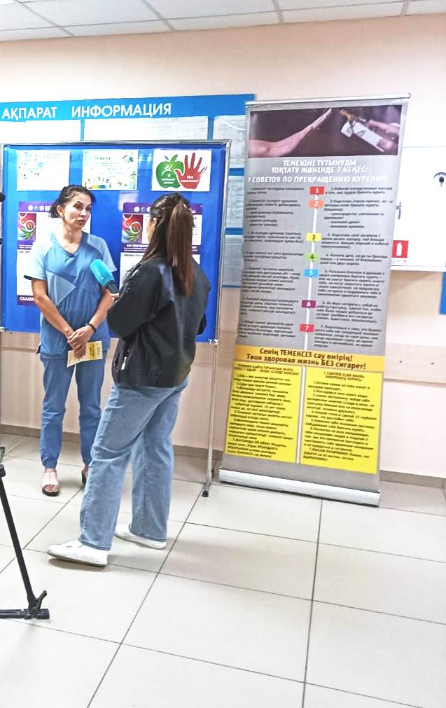 Медицинскими работниками поликлиники проводились беседы с пациентами на темы: «Профилактика наркомании», « Я выбираю жизнь, нет наркотикам», « Правила ведения здорового образа жизни». На каждом этаже поликлиники оформлены санитарные уголки по профилактике наркомании. Кроме того, психолог отделения профилактики и социально-психологической помощи Загребина Е.Ф., выступила на канале ТВ «Казахстан» с информацией на текущую тему.