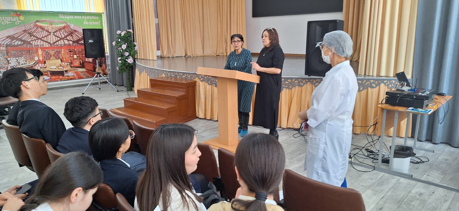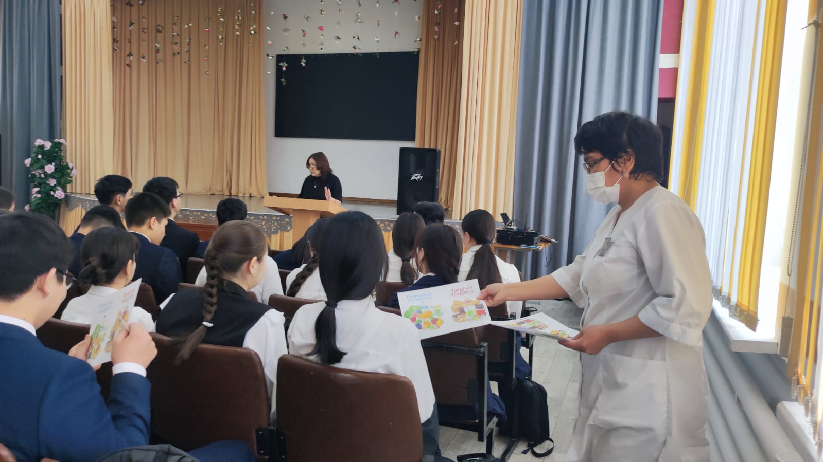 Команда специалистов молодежного центра здоровья 01.04.2024 года, провела семинар — тренинг в Школе Гимназии им.С. Мауленова на тему: «Правильное питание подростков и молодежи», «Не инфекционные заболевания желудочно-кишечного тракта у подростков» (НИЗ).