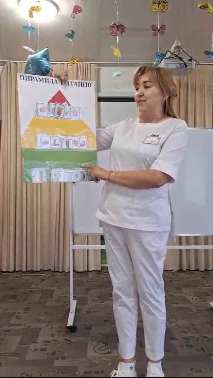 Врачом терапевтом молодежного центра здоровья 10.06.2024 года проведен семинар — тренинг на детской площадке школьного лагеря ОШ № 18 на тему «Правильное питание детей. Гигиена рук». Были проведены игры на тему пирамида питания и полезные и не полезные продукты.