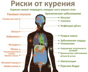 Пачка сигарет в день - это около 500 рентген облучения за год! Температура тлеющей сигареты 700-900 градусов! Легкие курильщика со стажем - черная, гниющая масса. После затяжки никотин попадает в головной мозг через 7 секунд. Никотин вызывает спазм сосудов, отсюда нарушение питания тканей кислородом. Спазм мелких сосудов делает кожу увядающей. Вред курения еще и в том, что появляется неприятный запах изо рта, желтеют зубы, воспаляется горло, краснеют глаза от постоянного раздражения дыма.