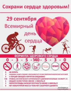 29 сентября более чем в 100 странах мира отмечается Всемирный день сердца: «Один мир, один дом, одно сердце».